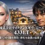 “4331.T —— (株)テイクアンドギヴ・ニーズ。”Zero 的声音清冷,像是一柄裁纸刀划破夜色,“在这座酒店的每一个角落,都跳动着‘House Wedding(ハウスウェディング)’的脉搏。神代,你看到了浪漫,而我看到了复苏的资产负债表。”