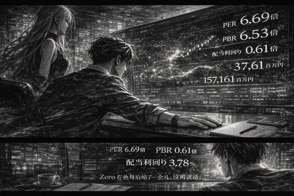 屏幕上的数字还在,6.69倍、6.53倍、0.61倍、3.78%、157,161 百万日元……